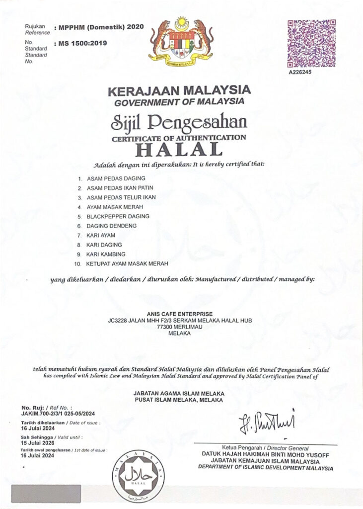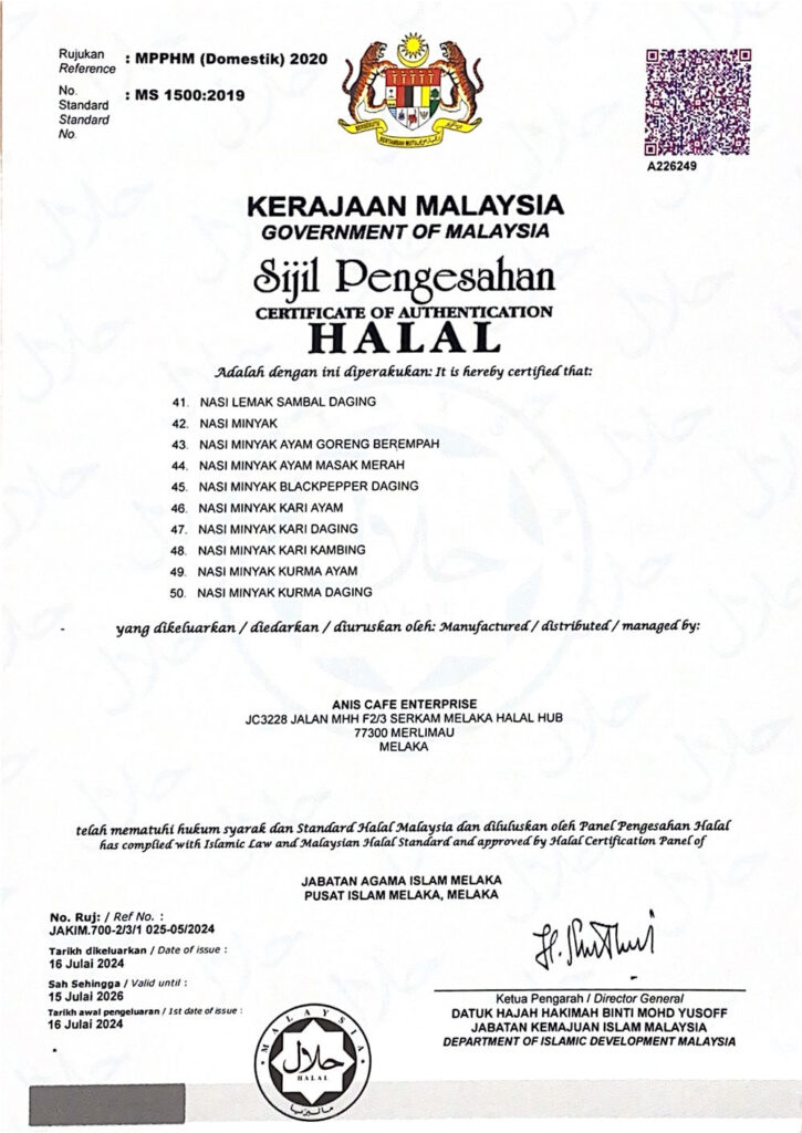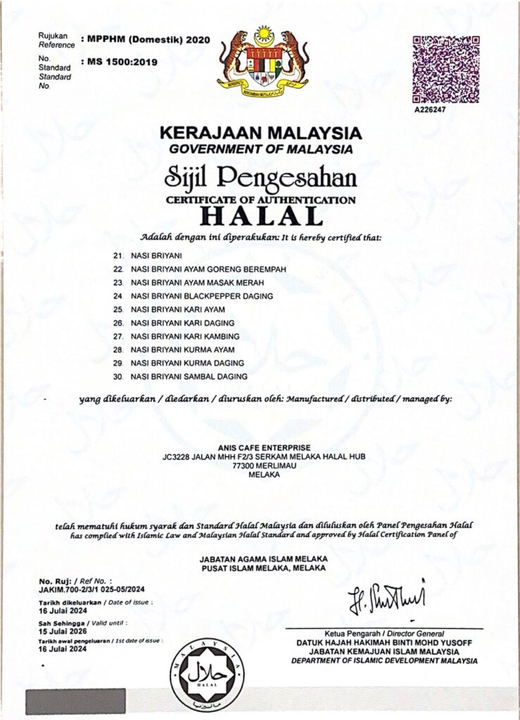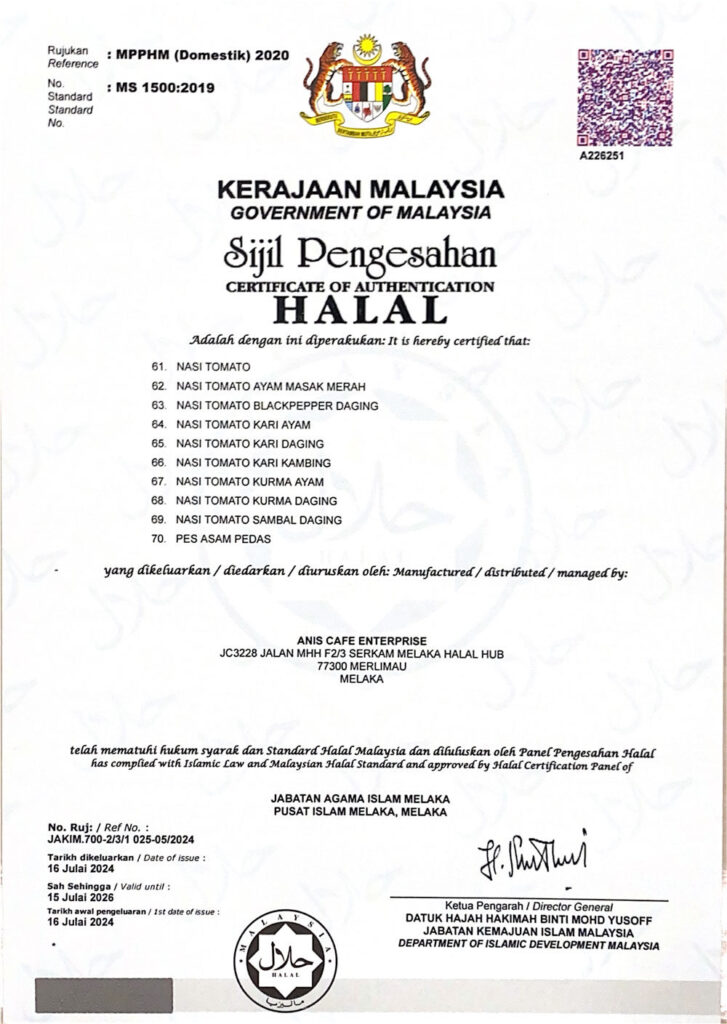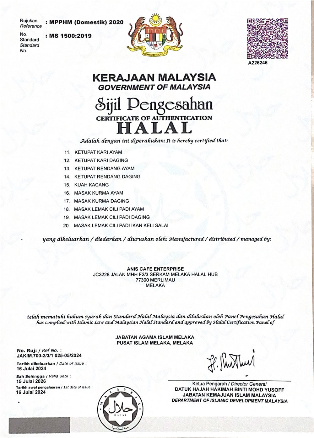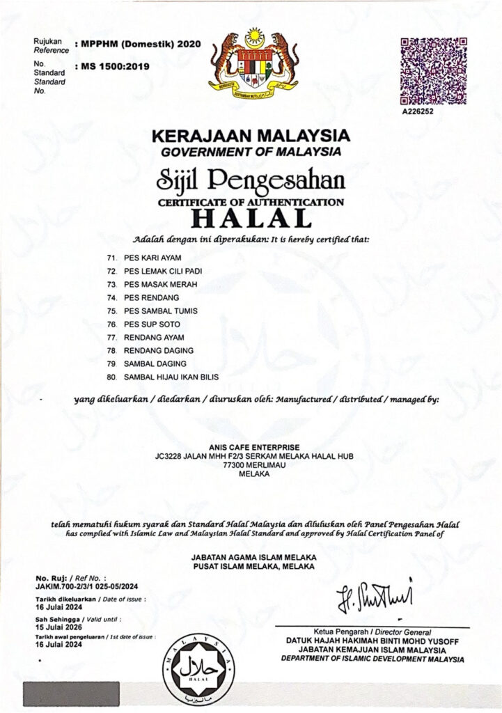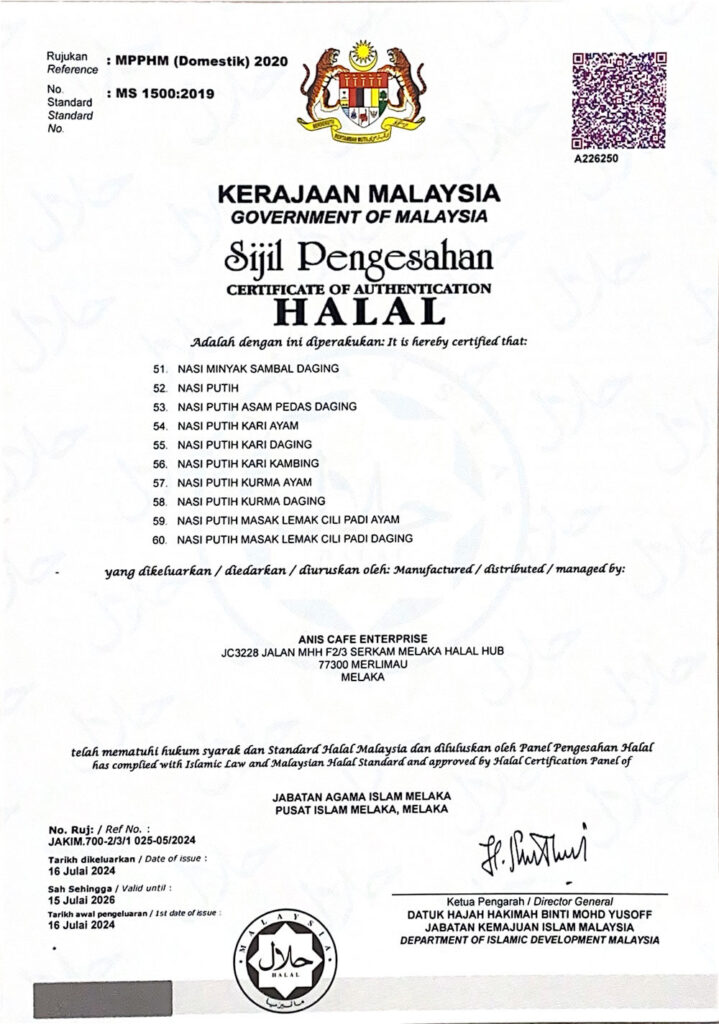 Kesemua produk Makanan Sedia Dimakan (Ready-To-Eat) keluaran Jasmani secara rasmi memiliki SIJIL HALAL JAKIM. Anda boleh menikmati hidangan kegemaran anda dengan yakin dan selamat. Kami jamin, daripada penyediaan bahan hingga ke proses pembuatan, semuanya Halal dan Bersih.