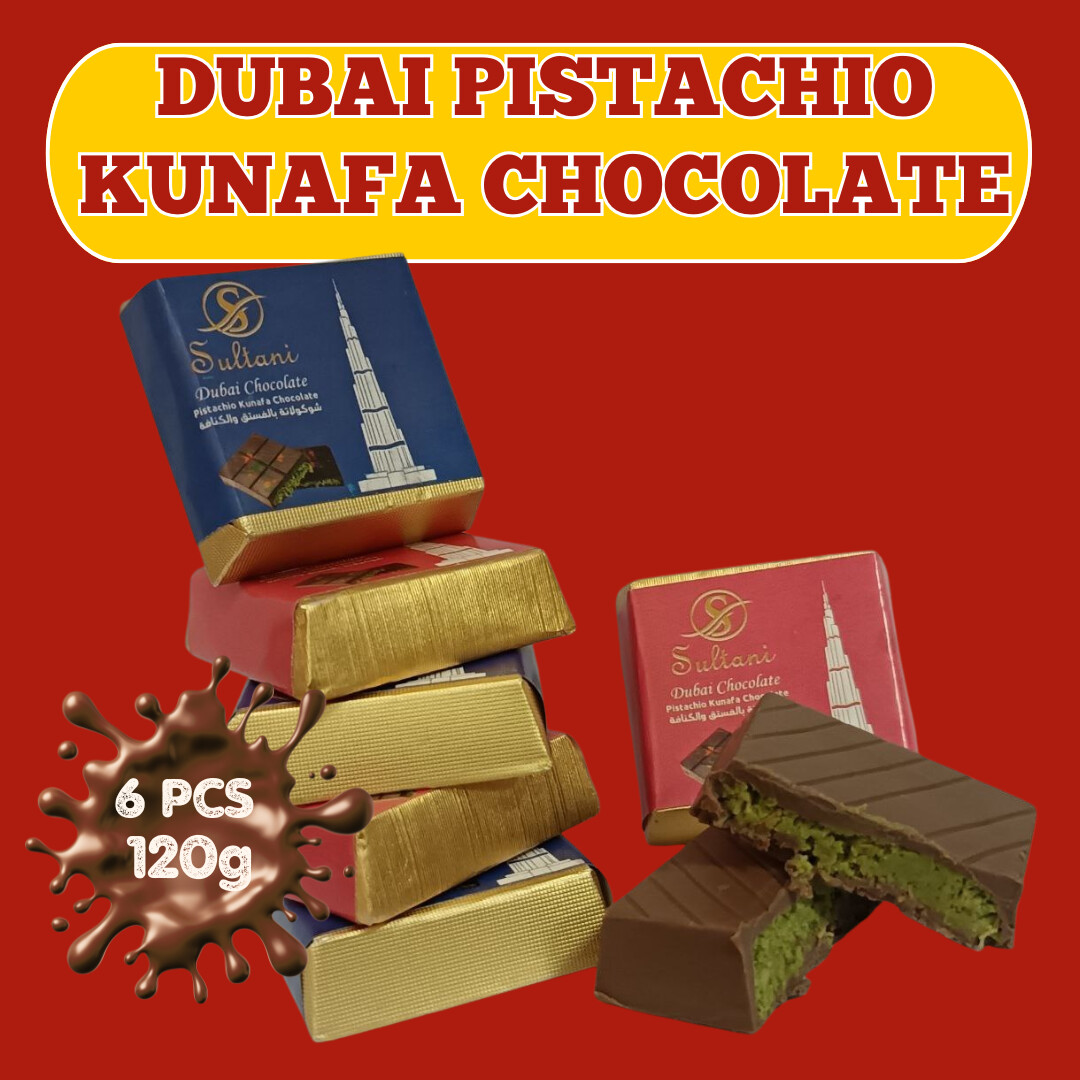 Nikmati kombinasi unik dan mewah melalui Coklat Pistachio Kunafa, hidangan istimewa yang menggabungkan coklat berkualiti dengan inti kunafa rangup serta pistachio premium. Produk ini direka khas untuk pencinta manisan yang menggemari rasa moden Timur Tengah dengan sentuhan coklat yang kaya dan memikat.