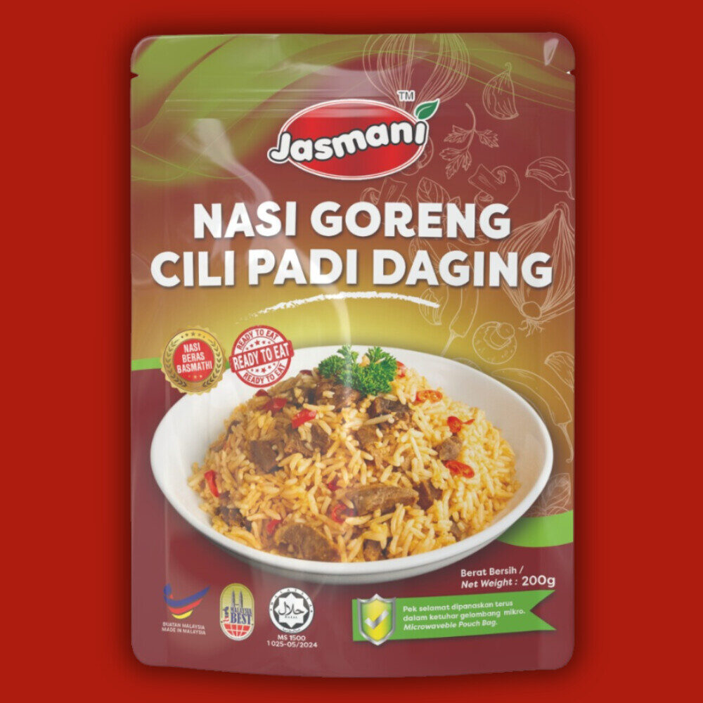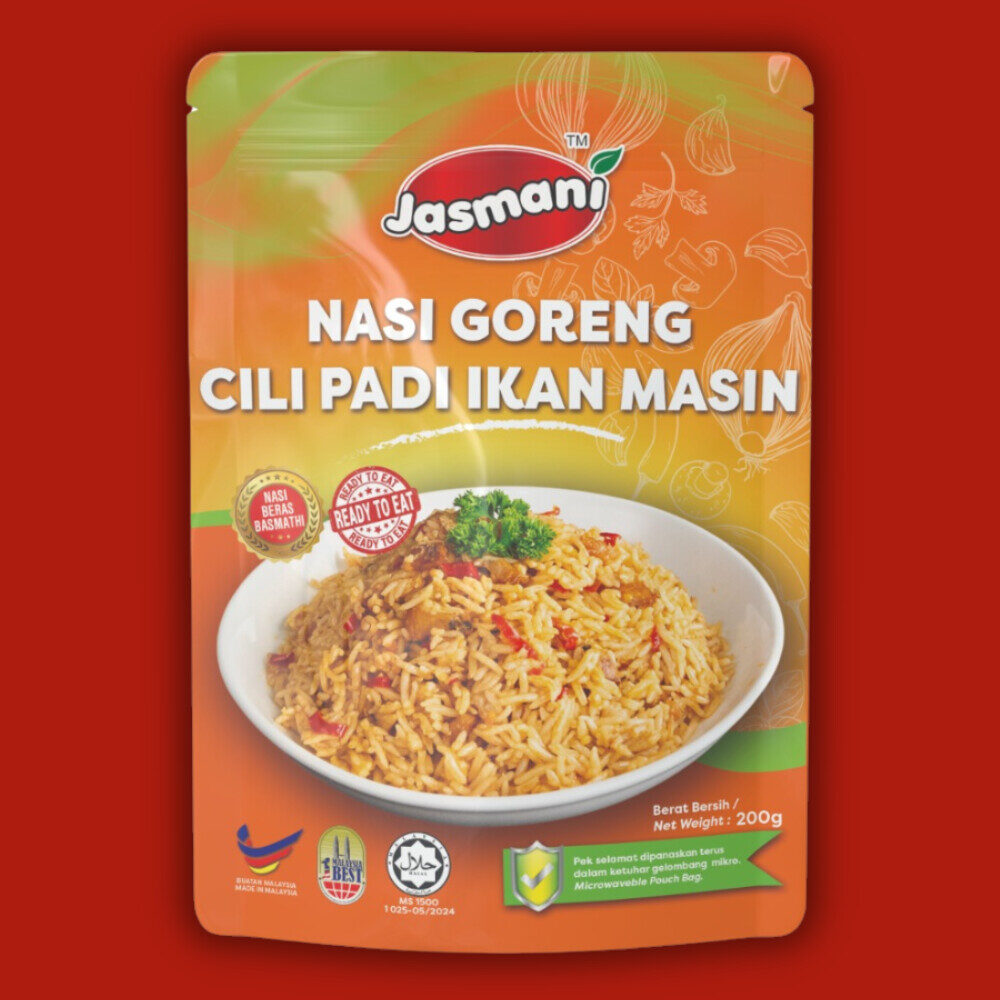 - Berat bersih: Setiap pek mengandungi 200g nasi goreng siap makan. Cukup untuk satu hidangan atau dikongsi bersama rakan-rakan dan keluarga anda.